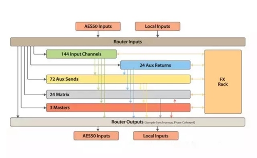PROX系統(tǒng)可以實(shí)現(xiàn)多達(dá)168個(gè)全處理輸入通道和99條統(tǒng)一延時(shí)自動(dòng)校正和相位一致的混音母線的處理能力,足以展現(xiàn)其強(qiáng)大的音頻處理能力。