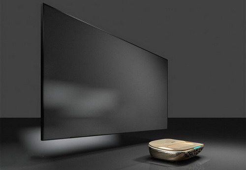 激光電視的本質是通過激光投影機和特殊的金屬幕布來實現。目前廠商主要使用的是一種藍色單一激光光源來透射出畫面,然后通過幕布來成像。因為幕布材質比較特殊,能夠反射掉除了激光投影機以外的光源,所以在亮度較高的環境下也能展現很好的畫面。