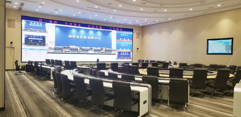 在應(yīng)急防汛抗災(zāi)的整個環(huán)節(jié)中,省應(yīng)急指揮中心在其中發(fā)揮著舉足輕重的作用。在應(yīng)對防汛抗災(zāi)應(yīng)急事件時,統(tǒng)一的決策、協(xié)調(diào)的指揮,科學(xué)的預(yù)判和部署以及全省上下迅速啟動的各項應(yīng)急預(yù)警機(jī)制,可以更加全面迅速的組織抗洪搶險工作。為更加有效的應(yīng) 對各種自然災(zāi)害,將各種救援信息整合在一起,以期刷新事故災(zāi)害應(yīng)急管理的格局,湖南省應(yīng)急管理廳決定對應(yīng)急指揮中心音視頻部分進(jìn)行升級改造。