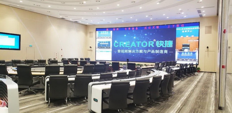 基于以上需求,在此次的升級改造中,我們在省應(yīng)急指揮中心啟用了以CREATOR快捷UHD-MAX144144 4K矩陣為核心的4K非IP坐席協(xié)作管理平臺,在應(yīng)急管理廳的其他會議室中則采用了16/36路混合矩陣以及5套中央控制系統(tǒng)。