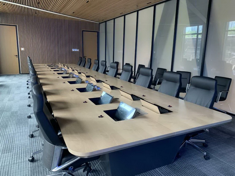 2、會議桌有升降式觸摸屏,既要配合好無紙化,話筒拾音必須達到最佳效果,無雜音。