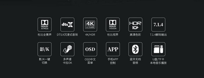6.多達(dá) 13聲道的全景聲7.1.4音頻解碼線路輸出;